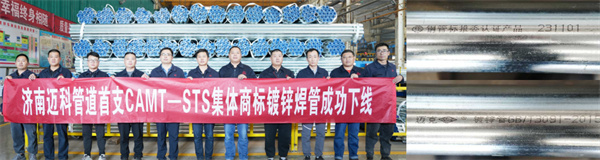 11月1日,濟南邁科管道科技有限公司正式全面推行“STS(鋼管標(biāo)準(zhǔn))”集體商標(biāo),首支印有CAMT-STS集體商標(biāo)鍍鋅鋼管成功下線。